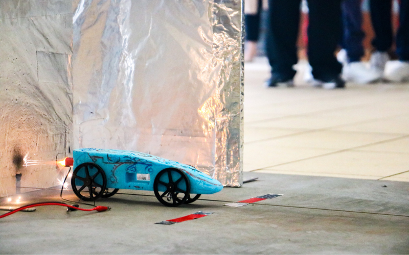 初次親眼見證自己製作的火箭車被點燃火藥發射出去,並以疾如雷電般高速向前飛進,同學們都感到非常興奮雀躍,驚奇萬分!